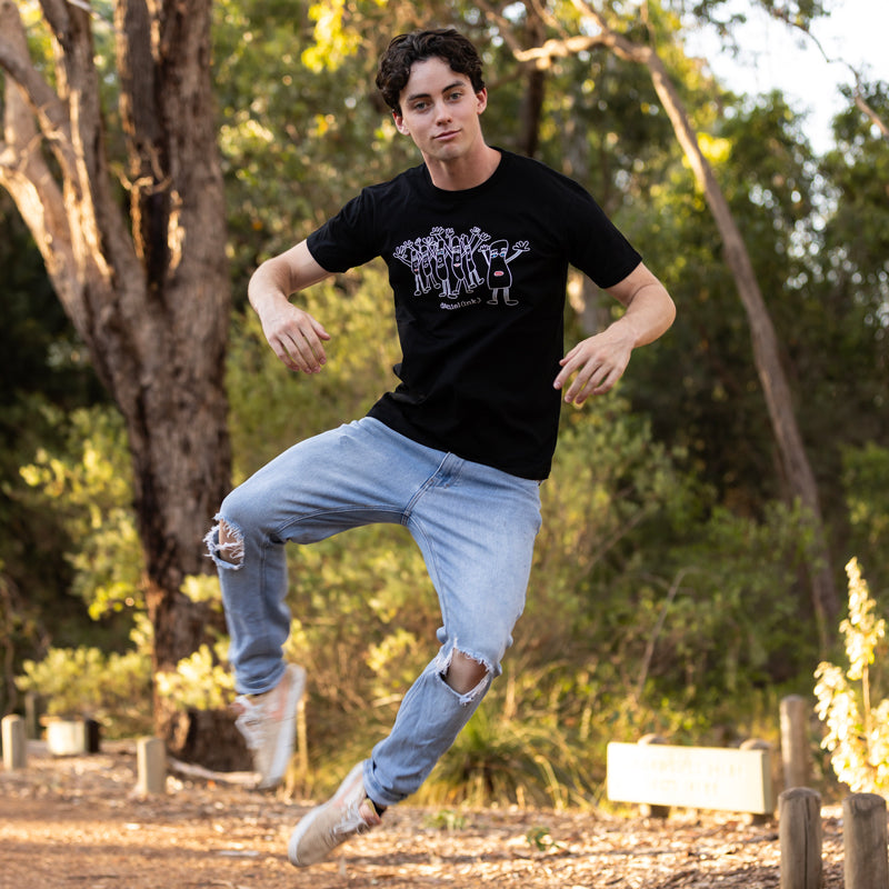 I didn’t set out to be a t-shirt designer – I really wanted to be a comedian – but, back in the day, I drew a couple of designs for a screen-printing project at TAFE, put one of them on a t-shirt, and, as they say, the rest is history.